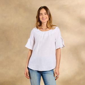 Fall in love with Angelou??so soft and light in a sushi voile fabric. Every detail adds beauty. from the button placket front to the raw-edge neckline. Easy gathering at the three-quarter sleeve cuff. Viscose/cotton. Machine wash. Imported. Exclusive. Sizes XS (0?C2). S (4?C6). M (8?C10). L (12?C14). XL (16?C18). XXL (20?C22). Approx. 25l.