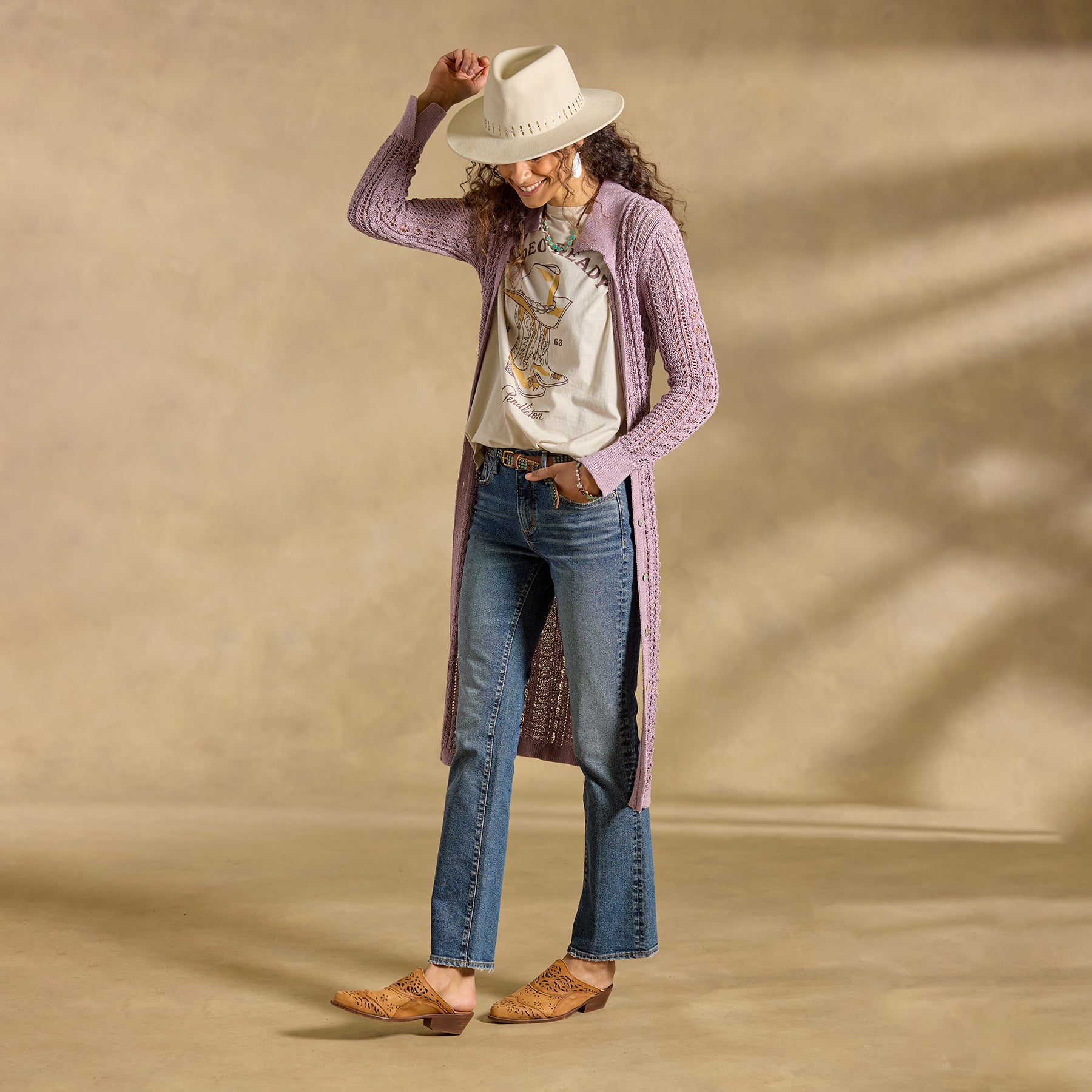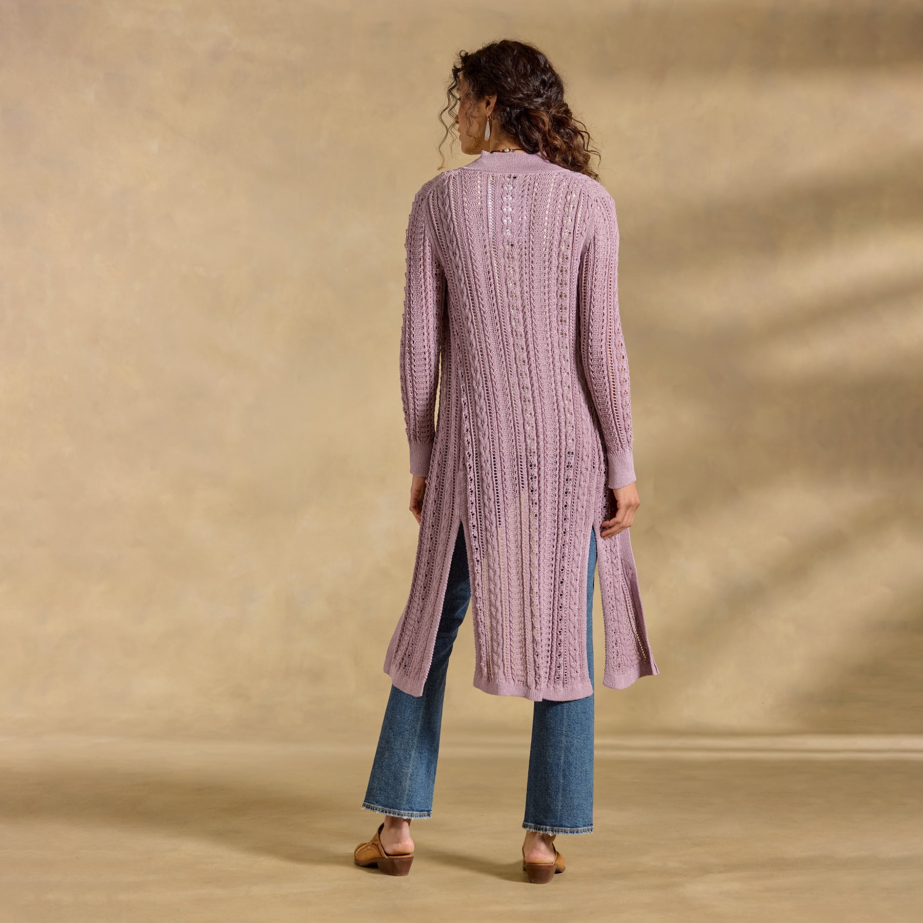 Meet our most subtle statement sweater: the Augusta Duster. With lightweight yarn and an artful open stitch. she’s equally cozy over jeans or your favorite maxi. Poly/cotton/nylon/lurex/linen. Hand wash. Imported. Exclusive. Sizes XS (0?C2). S (4?C6). M (8?C10). L (12?C14). XL (16?C18). XXL (20?C22). Approx. 42.5l.