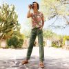 A worldly engineered print is the focus of our graceful Bingham Lace Top. with open embroidered eyelet throughout. natural shell button front and cuffs and ruffle neckline detail. Ramie. Hand wash. Imported. Exclusive. Sizes XS (0?C2). S (4?C6). M (8?C10). L (12?C14). XL (16?C18). XXL (20?C22). Approx. 24.5l.
