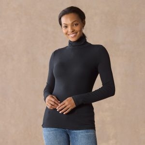 An essential in a classic fit. our soft as a cloud ribbed turtleneck is so stylish with roped turtleneck for a relaxed look. Contrast bar tacks at the side seams. Micromodal/spandex. Machine wash. Imported. Exclusive. Sizes XS (0–2). S (4–6). M (8–10). L (12–14). XL (16–18). XXL (20–22). Approx. 25l.