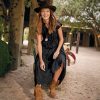 With a name that means supreme leader. our Naidu maxi is destined to become queen of your closet. A flattering V-neck graces the covered-button bodice. while all-over floral and border prints cast the perfect bohemian vibe. Adjustable straps. side seam pockets. side zipper and full lining. Viscose. Machine wash. Imported. Exclusive. Sizes XS (0-2). S (4-6). M (8-10). L (12-14). XL (16-18). XXL (20-22). Approx. 54l.