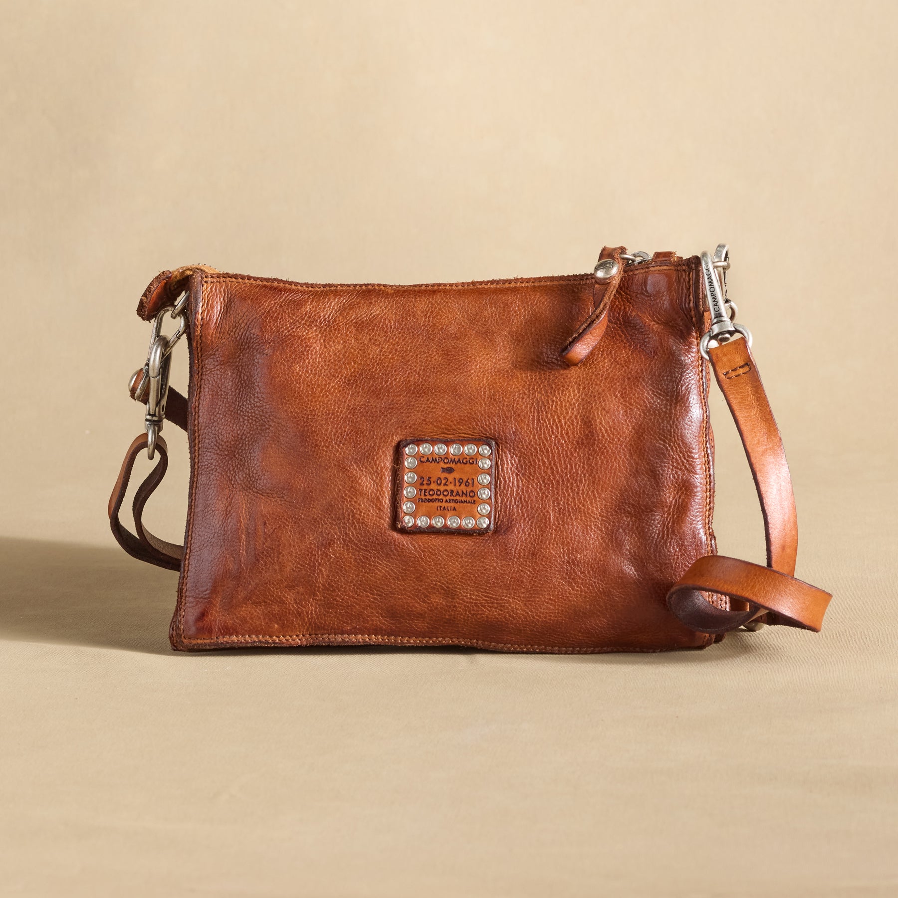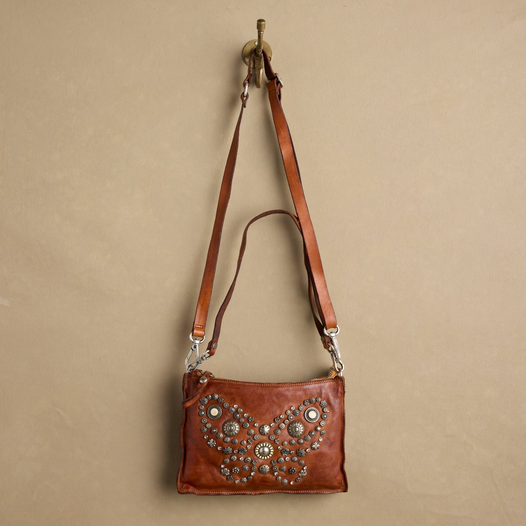 A gentle butterfly spreads its wings in a symbol of hope. crafted from silver details on our vintage inspired clutch. Detachable wristlet strap. one zipped pocket. Leather. Italy. Approx. 9.8l x 1.2d x 6.7h.