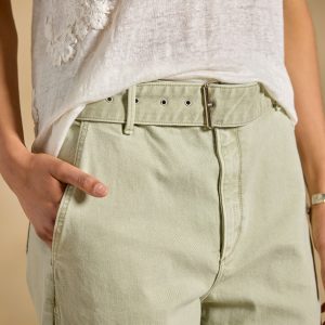 These tapered-seam barrel-leg pants are so flattering. in relaxed-fit twill with detachable belt. Five-pocket styling. Cotton/spandex. Machine wash. Imported. Sundance exclusive. Sizes 24?C32. 28.5 inseam; 12.2 rise; 9 leg opening.